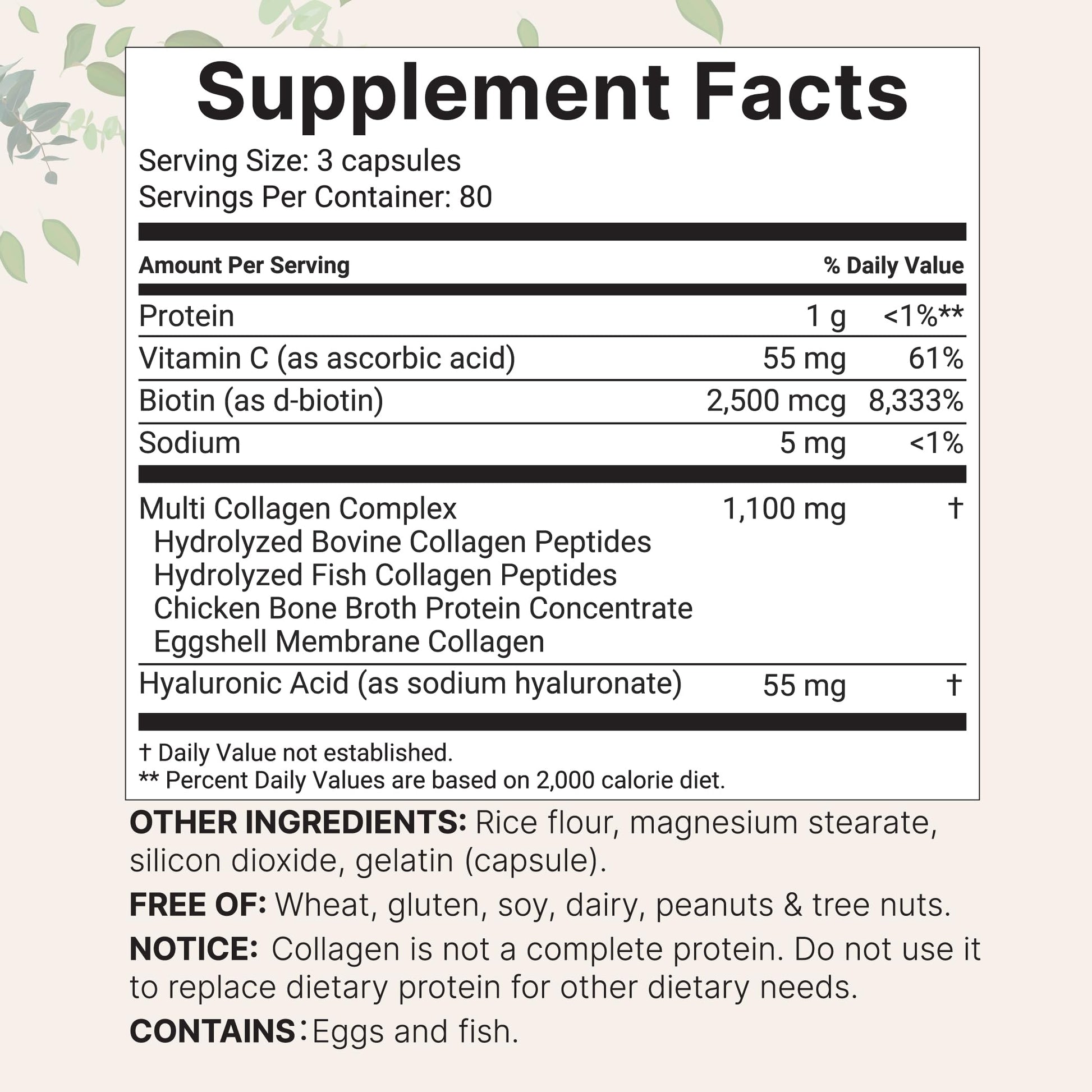 • Belleza Reforzada: Enriquecido con Biotina (para un cabello y uñas fuertes), Vitamina C (esencial para la síntesis de colágeno) y Ácido Hialurónico (para la hidratación de la piel).