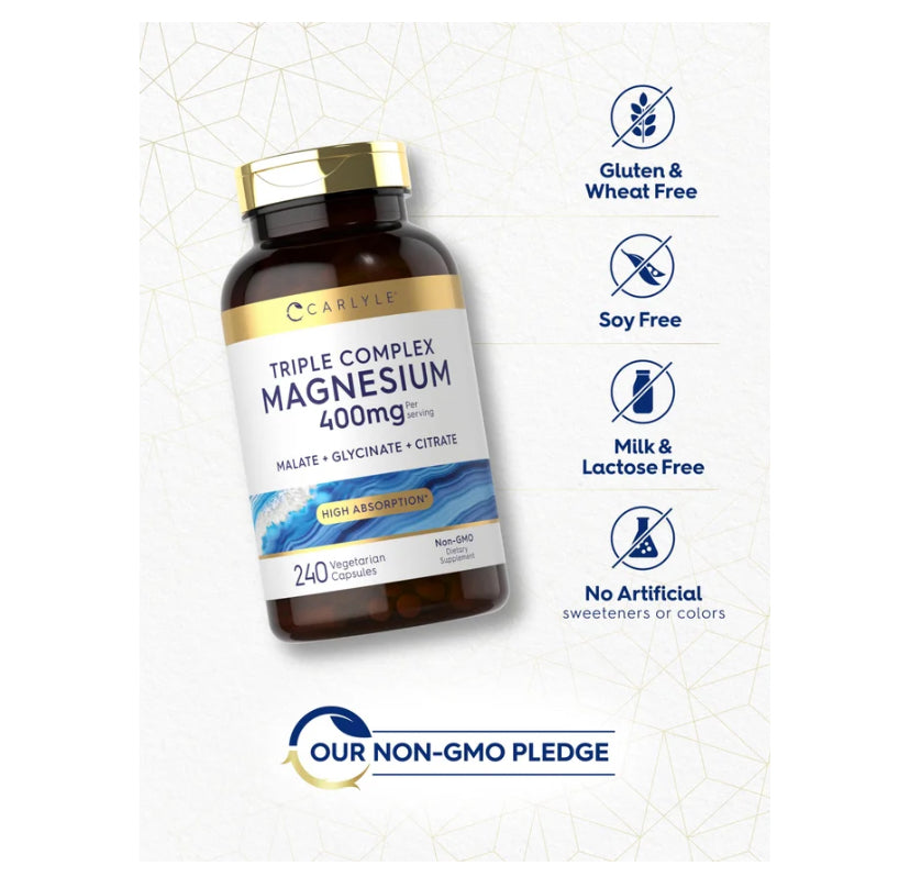Triple Magnesio (Glicinato + Citrato + Malato) Carlyle (240 cápsulas)