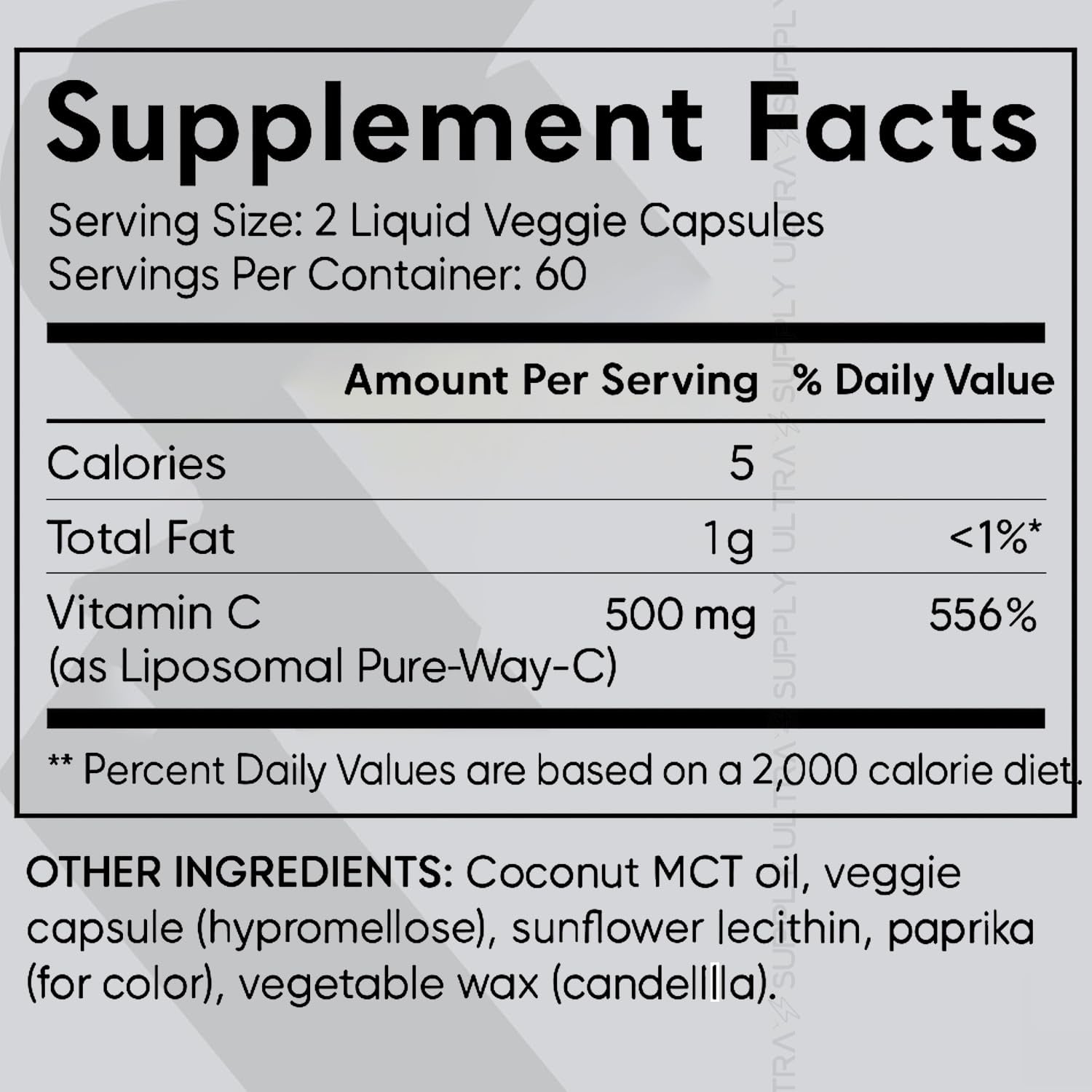 Sports Research Vitamina C Liposomal (500mg): Máxima absorción con Pure-Way C®. 120 cápsulas veganas para el sistema inmune. ¡Libre de gluten y OGM!